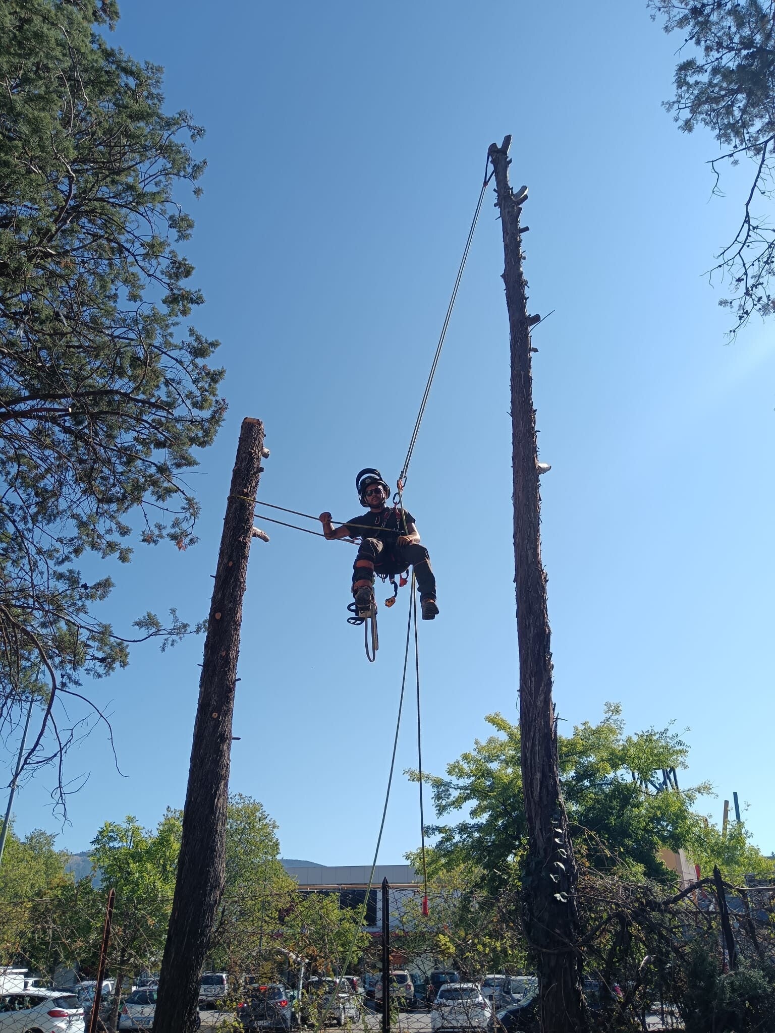 Emiliano Pulcinelli specializzato in tree climbing, arrampicata su alberi. Utilizzando corde e tecniche specifiche si accede alla chioma dell'albero per intervenire in caso di abbattimenti e di potature. È il metodo più rispettoso per l’albero perché permette all’operatore di raggiungere ogni punto della chioma senza usare mezzi pesanti, evitando danni al tronco, alle radici e al terreno circostante. Ogni operazione viene svolta utilizzando tutti i dispositivi di protezione necessari per lavorare in modo sicuro, realizzando operazioni di potatura mirate e abbattimenti che necessitano di concentrazione e precisione. Con questa tecnica posiamo effettuare interventi specialistici in quota con corde, nel pieno rispetto dell’albero e dello spazio verde.